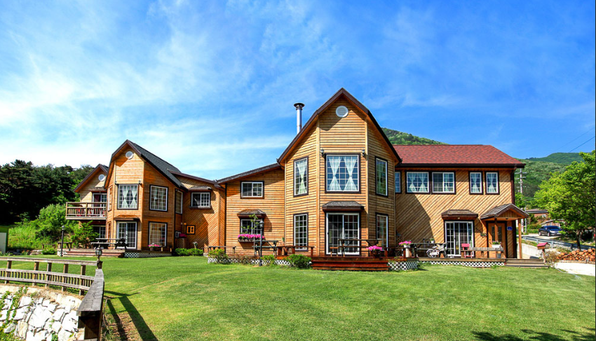 아름다운 휴식을 취할 수 있는 펜션입니다. 아름다운 목재 건물에 바비큐장, 수영장 등이 있습니다.