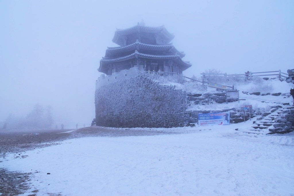 덕유산의 최고봉으로 높이 1614m입니다. 덕유산 국립공원 삼공탐방지원센터를 기점으로 무주구천동 계곡을 거쳐 오르는 코스 등 여러 등산로가 있으며, 곤돌라를 타고 설천봉에 내려 향적봉까지 20분 정도 산책길을 가변 향적봉에 오를 수