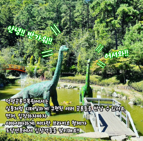 경기도 이천의 공룡 수목원은 실무 크기의 공룡 조형물을 만들어서 숲 속에 전시해서 실감이 납니다. 어린이들은