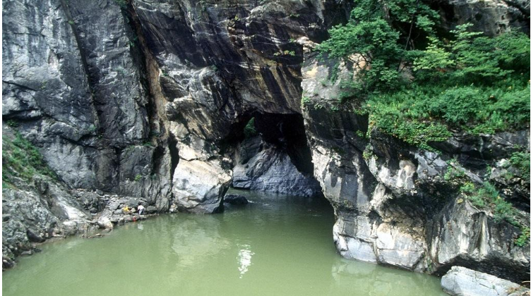 황지에서 발원한 낙동강 물길이 산맥을 뚫고 지나가면서 높이 20~30m, 너비 30m 정도 되는 커다란 석문을 만들어 놓았습니다. 흐르는 물의 오랜 침식작용으로 석회암 산이 뚫려서 만들어진 이 석회동굴은 세계적으로 그 유형을 찾기 힘든 특수한 지형입니다. 구문소의 전설이 깃든 소이기도 합니다.