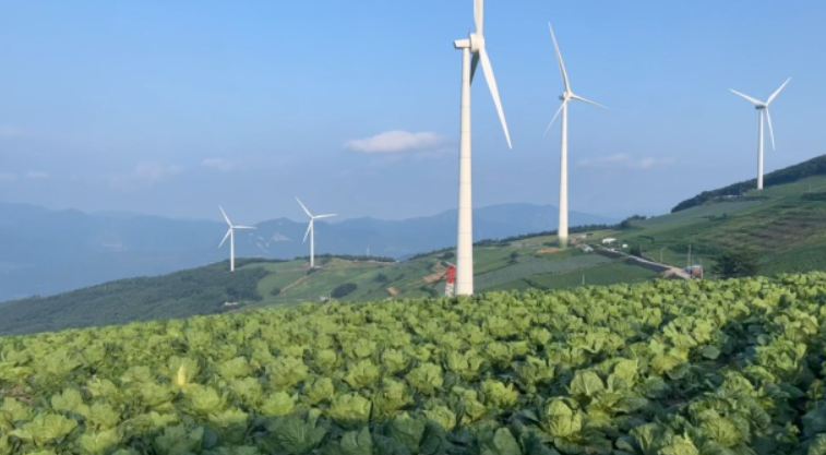 고랭지 배추밭과 풍력발전기가 어우러진 풍경입니다. 올라가는 길은 오르막을 가야 되지만 경치는 정말 좋은 곳입니다
