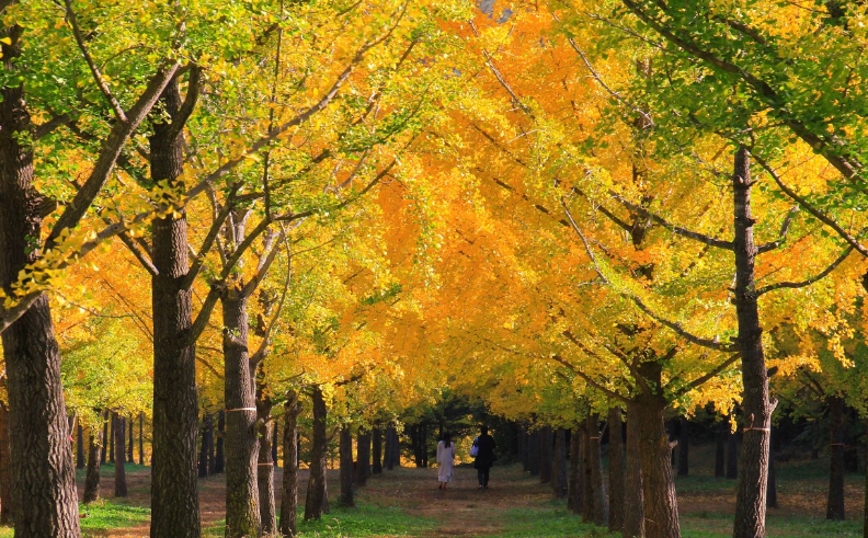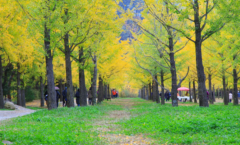 날짜를 잘 맞추어 가야 되는 은행 단풍 명소입니다. 10월 한 달만 개방하기 때문입니다. 은행나무숲에서 힐링하고 농산물도