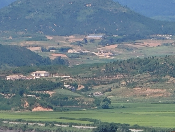 개성시의 송악산이 보이고 북한 주민들이 농사짓는 모습도 보입니다.