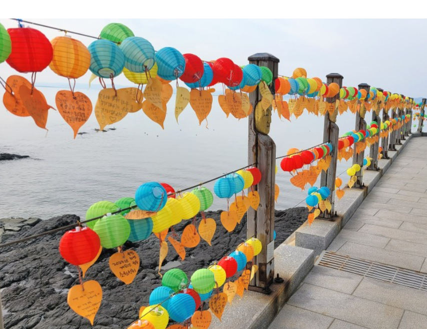 바다 위에 떠 있는 용궁 같은 절입니다. 바닷물이 들어오면 작은 섬이 되고 물이 빠지면 길이 열려서 걸어서 통행할 수