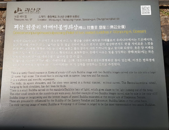 보물 제97호로 지정된 마애불상군으로 두 불상이 나란히 앉아 있는 형상은 우리나라에서는 드물고 중국에서 유행하였던