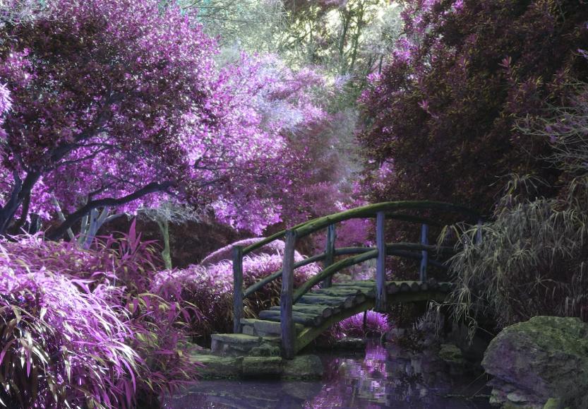 오시키엔은 연못, 찻집, 대나무 숲을 포함한 다양한 스타일의 일본 조경이 있는 평화로운 정원입니다.