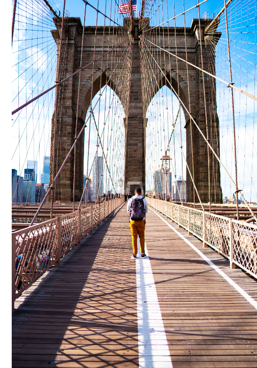 이 아름다운 다리는 뉴욕의 상징적인 건축물 중 하나로, 걸어서 건너면서 맨해튼과 브루클린 사이의 멋진 전경을