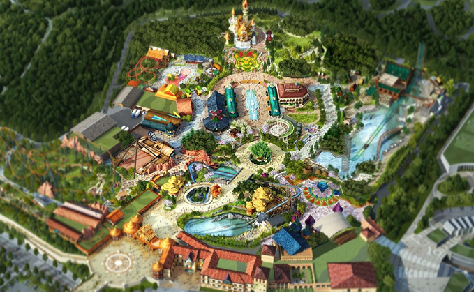 롯데월드 부산은 요정마을 '팅커 폴스 존''토킹 트리'등 6개 존 스토리, 파크 최상부는 로리 캐슬은 롯데월드 부산의 상징,