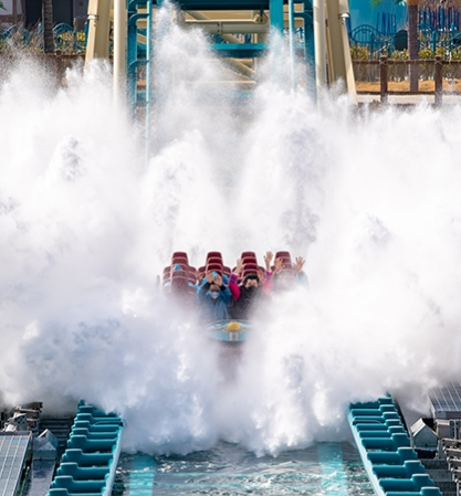 자이언트 스플래쉬는'원더우즈 존'에 위치하는 거대한 물웅덩이를 오가는 거대한 'U'자형 레일입니다.