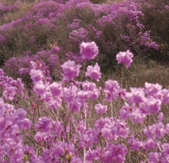 4월 중순이면 온산이 붉게 타오르는 듯한 장관을 볼 수 있습니다.