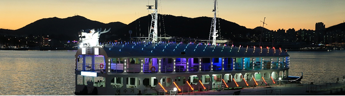 야간 해상 시티투어는 19시 30분(계절에 따라 출발시간 변동)에 출발하며 부정기 여객선이므로 미리 예약하여 출발하는