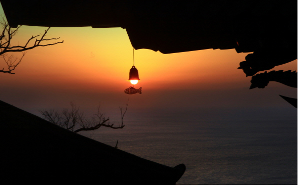 여수 돌산도의 향일암은 우리나라 4대 관음기도 도량으로 신비함을 간직하고 있습니다. 주차장에서 40도에 가까운 돌계단을 오르고 오르면 석문이 잎을 가로막는데 몸을 낮추고 숙여야만 지나갈 수 있고 사람 한 사람 통과할 수 있는 바위틈새가 있습니다. 뒷산은 금오산인데 바위들이 거북 등껍질처럼 선이 그어져 있어서 거북의 영이 서린 암자인 영구암이라고도 하며 거북이가 경전인 향일암을 등에 짋어지고 남해 바닷속 용궁으로 들어가는 형상을 취하고 있습니다.