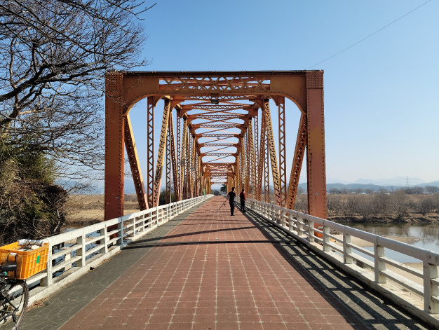 의령천의 맑은 물과 함께 잘 조성된 수변공원 위로 우뚝 솟은 구름다리가 마치 한 폭의 그림처럼 아름답습니다.