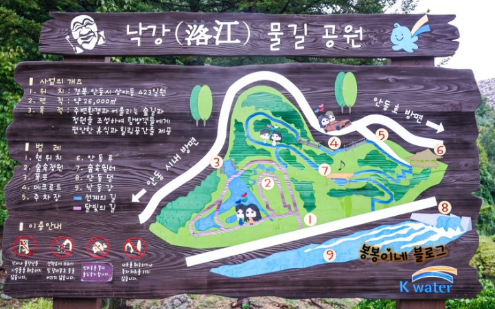안동의 비빌의 숲이라고도 불리는 낙동강 물길 공원입니다. 안동호를 바라보면서 산책하며 힐링하는 코스입니다.