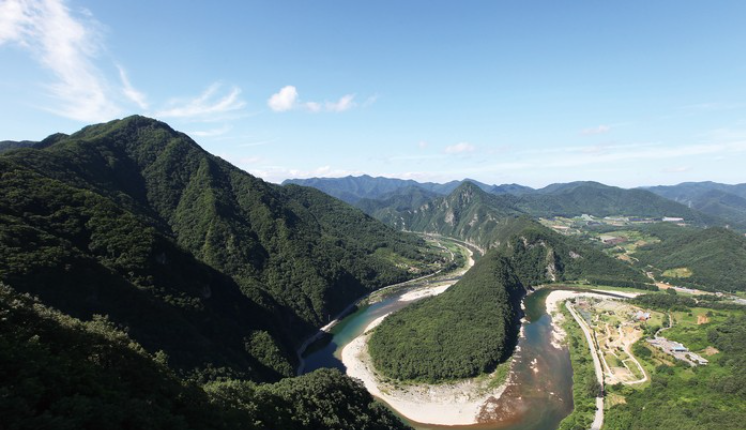 언론에 자주 등장하는 강원도 동강의 한반도 지도 모양의 땅입니다. 정선군 정선읍 병방치길 225 네비를 치고 가시면 주차장에 주차 후 전망대를 가면 동강 한반도 지도 모양의 지형을 스릴 넘치는 강화 유리판 위에서 볼 수 있습니다.