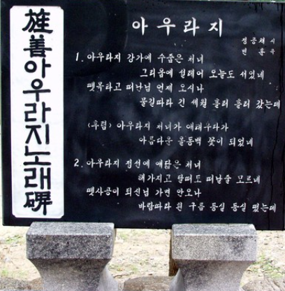 정선 '아우라지'는 첩첩산골인 정선 땅 중에서 하늘을 가장 많이 바라볼 수 있는 평지이며 산이 곱고 물이 맑은 곳으로 두 갈래 물이 한데 모여 어우리 지는 나루라는 뜻입니다. 정선의 아우러지는 많은 전설이 있는 곳으로 떼돈을 번다는 말은 이곳에서 유래된 말이라고 합니다. 조선시대 경복궁 공사할 때 뗏목으로 나무를 운반하여 돈을 번다고 해서 유래되었다고 합니다.
