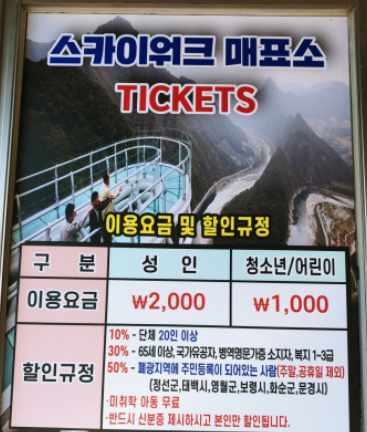 심장에 문제 있는분은 스카이워크를 가지 마시고 좀 더 짚와이어 타는 산길로 올라가서 감상하세요. 스카이워크 있는 곳은 매표소를 통과해야 볼 수 있도록 가림막이 설치되어 있습니다.