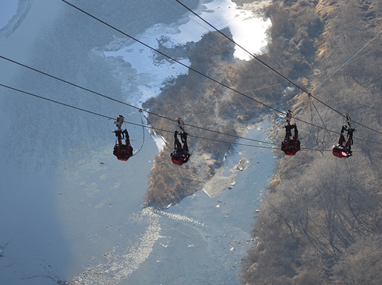 세계 최고 높이의 집와이어가 있는곳입니다. 병방치전망대에서 조금만 올라가면 짚와이어 타는곳이 나옵니다. 동강 한반도 지도가 보이는 지형을 보면서 씨~잉 하고 순식간에 내려갑니다. 도착하면 셔틀버스가 30분마다 다시 원위치 시켜줍니다. 어디던지 짚와이어 가격대는 좀 있는 편입니다.