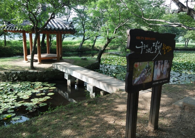촬영지로 봄에는 벚꽃이 아름답다고 소문이 났습니다. 상족암에서 1시간 정도의 거리에 있습니다.