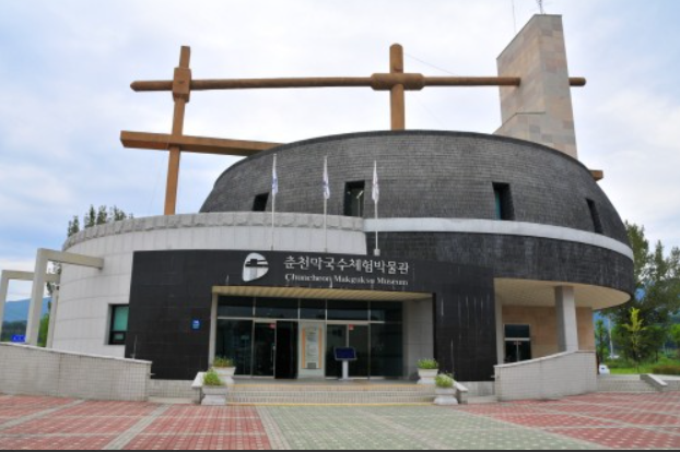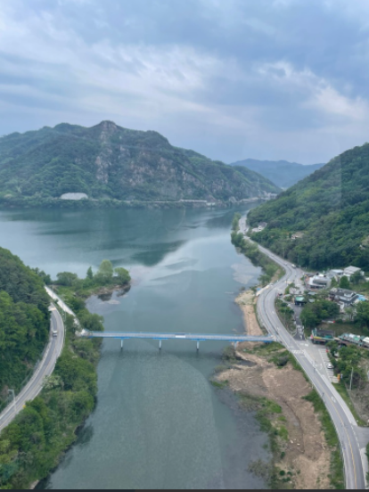 우리나라 최대의 댐인 소양강에 있는 소양강 스카이워크는 길이가 174m, 강화유리 구긴 156m로 바닥이 투명한 원형 광장에 앉아 기념사진을 남기기 좋습니다. 광장 맞은편에는 일명'쏘가리상'이라 불리는 조각상이 있습니다. 여기서 소양강을 유람선으로 관광하는 곳은 가까운 곳에 있습니다.