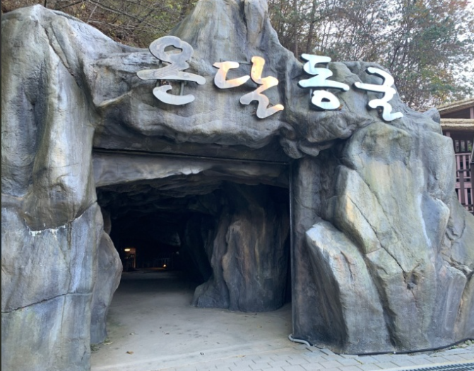 단양군 적성면 애곡리 129-2위 치한 양쪽 벽에 이끼가 끼어서 전국 어디서도 보기 도움 광경입니다. 수양개 빛 터널