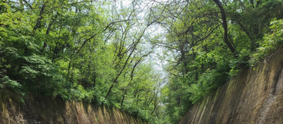 가늘길에 있습니다. 영화 속에 한 장면 같은 분위기입니다. 제발 벽에 낙서 좀 하지 않았으면 합니다. 그러면 이끼가 손상되어 아름다운 광경이 줄어들기 때문입니다.