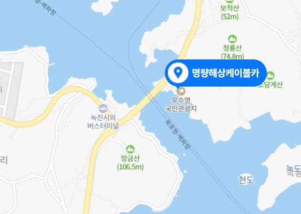 명량대첩의 역사의 현장을 하늘에서 볼 수 있습니다. 우돌 목의 회오리를 감상하는 케이블카로 해남과 진도를 잇는