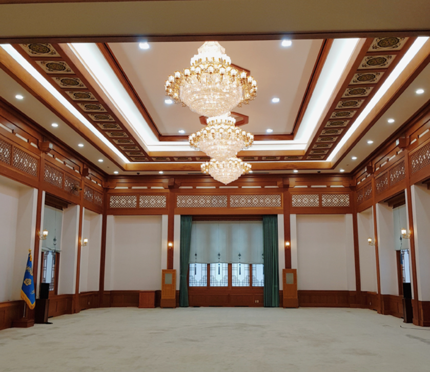 청와대에서 가장 은밀하고 깊숙한 구중궁궐인 대통령사저입니다. 규모도 크지만 너무나 정갈하고 멋있습니다. 만찬장의 샹데리아가 창문으로 보이는데 엄청 화려합니다.