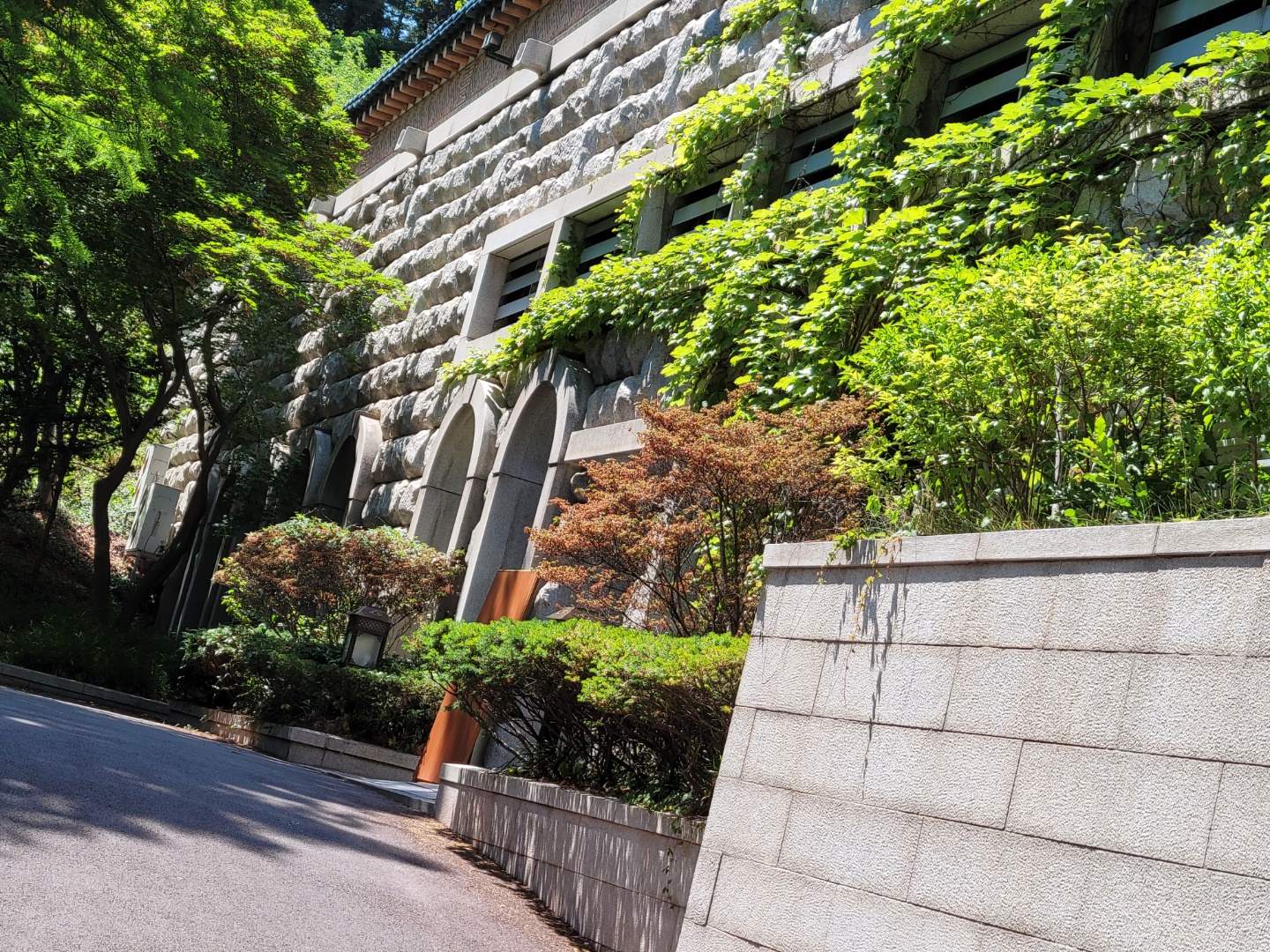 청와대에서 가장 은밀하고 깊숙한 구중궁궐인 대통령사저입니다. 규모도 크지만 너무나 정갈하고 멋있습니다. 만찬장의 샹데리아가 창문으로 보이는데 엄청 화려합니다.
