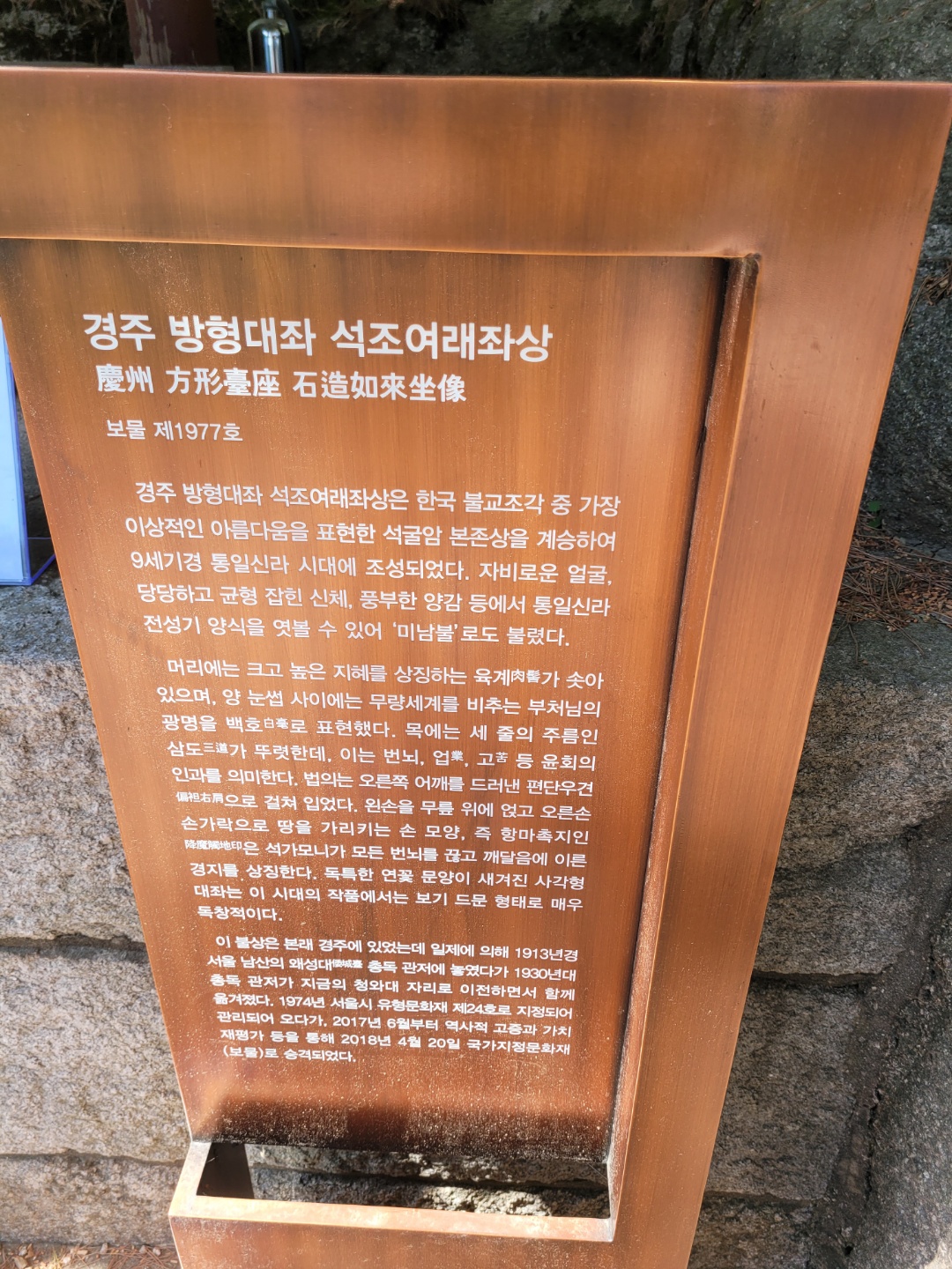 오운정에서 조금 더 올라가니 미남불 부처님이 나왔습니다. 경주 방형대좌 석조여래좌상은 한국 불교조각 중 가장