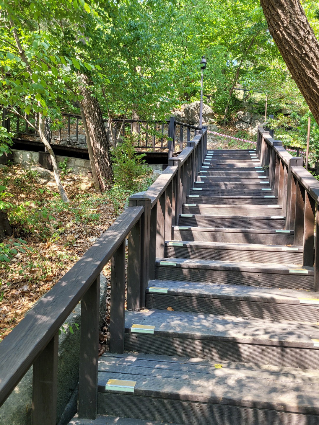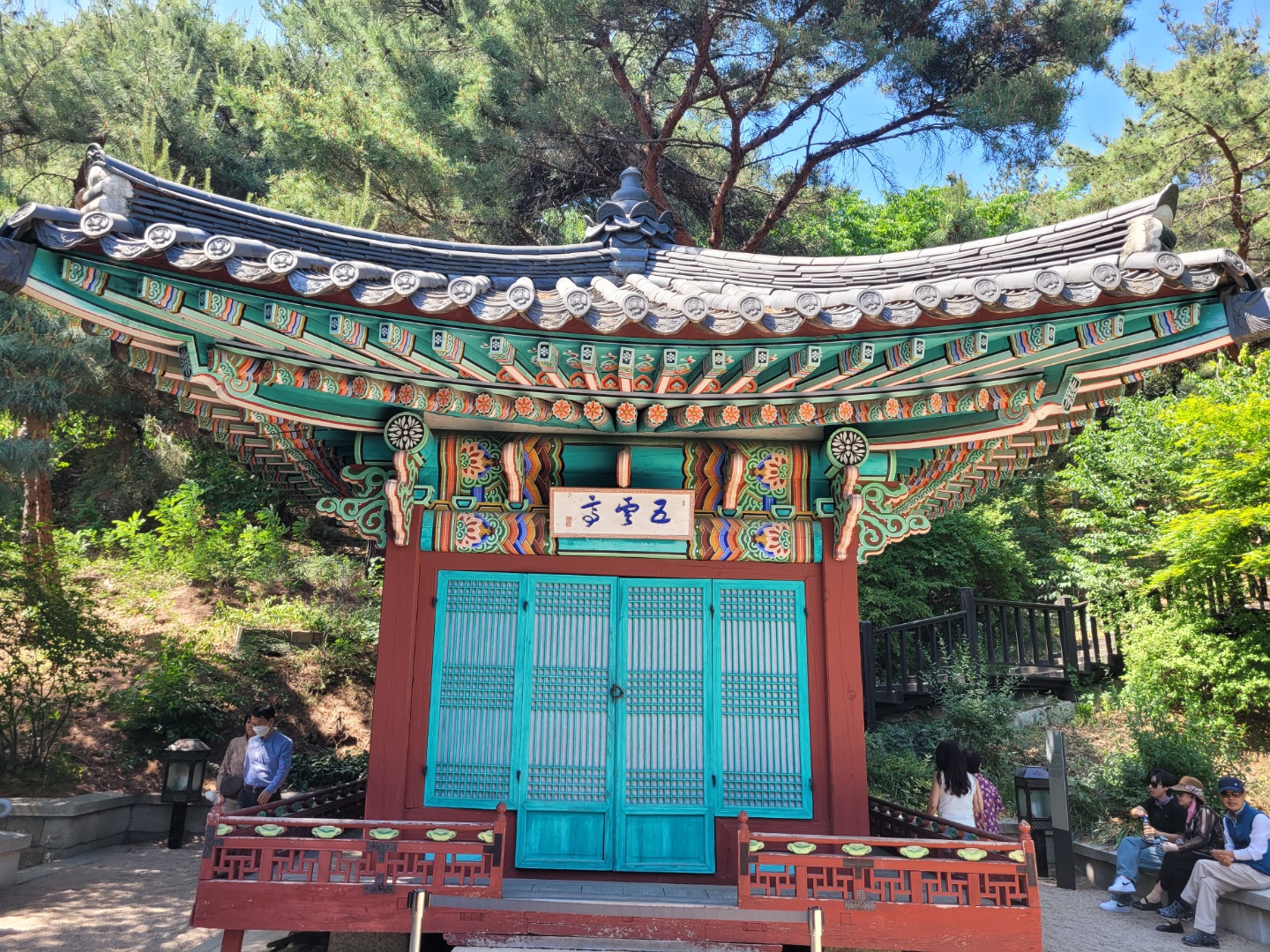 관저 침실앞에 텃밭 가꾸었는지 텃밭이 있네요. 지금은 주인이 없으니 휑합니다. 관저를 나와서 연못을 지나서 왼쪽 계단으로 오운정을 올랐습니다. 오운정은 경복궁 후원에 휴식을 위해 지은 정자로, 자연의 풍광이 신선세계와 같다고 하여 '오색구름'을 뜻하는 '오운'이라는 이름이 지어졌다고 합니다. 서울 툭 별시 유형문화재 제102호.