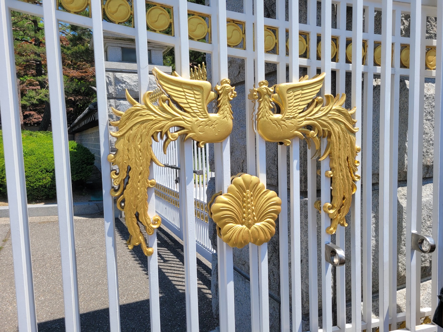 관저 정문과 한국의 건축미를 내는 멋진 기와틀지붕과 빗물을 받아내는 곳등 감탄입니다.