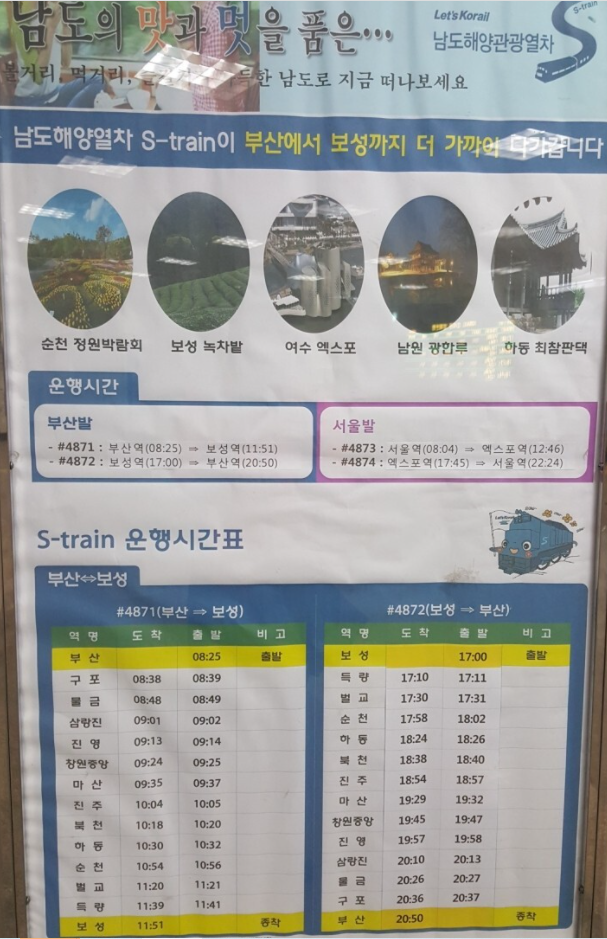 4. 구포역 기차시간표와 운임- 남도 해양열차 시간표