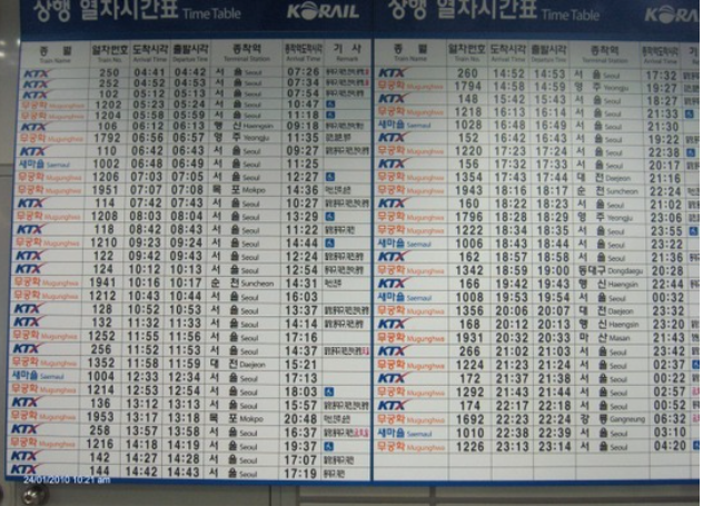 1. 구표역 기차시간표와 운임 - 상행선 열차시간표