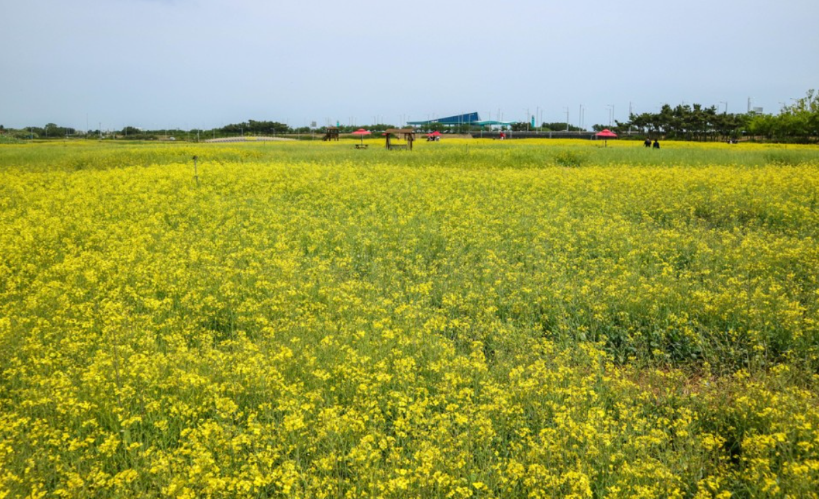인천 국제공항공사에서 하늘정원 3만 6000m 2에 조성된 유채꽃밭을 조성하여 시민들에게 무료 개방하고 있습니다. 5월에 유채꽃이 필 때가 절정입니다. 시골의 한가한 어촌마을이 지금은 세계 1위의 공항이 되었지만 이렇게 유채꽃밭을 즐기수 있는 산책코스가 있고 주변에 카페도 있어서 드라이브코스로 좋습니다.