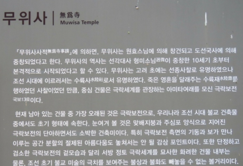 무위사는 원효대사에 의해 창건하여 도선국사가 중창한 고찰로 조선 초기 세종대왕 시대에 효령 대운의 시주로 극락보전이 지어졌는데 이 극락보전이 임진왜란과 병자호란에도 화를 입지 않아서 조선 초기의 웅장함과 화려함이 으뜸인 그대로입니다. 무위사는 국보 제13호입니다.