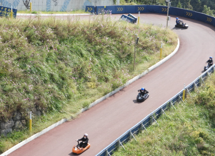 청도군 화양읍 프로방스 맞은편에 우리나라에서 가장 긴 루주 테마파크가 있습니다. 1.88km의 길이와 트랙 최대 경사도 12%, 체감속도 60km/h, 직선 곡선 크로스 코스를 활강하며 짜릿한 경험을 느낄 수 있습니다.