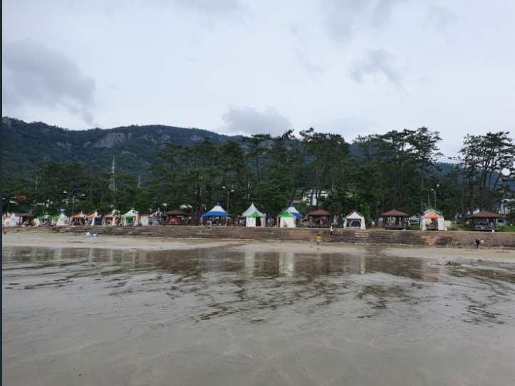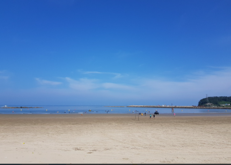 모양의 넓은 백사장 뒤편에 2000여 그루의 곰솔이 해안을 따라 숲을 이루며 바닷물이 맑고 모래가 고와 모래찜질 하기에 좋습니다.