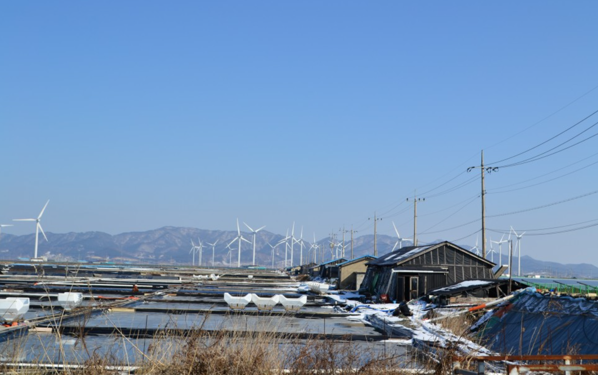 영화'독전' 촬영지이기도 한 천일염전입니다. 질 좋은 천일염을 생산하던 곳입니다. 지금은 태양광 발전소와 풍력발전소로 에너지 발전소 가득 차고 염전은 조금....
