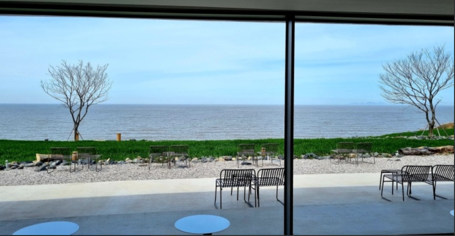 영광군의 보리밭 오션뷰로 유명한 백수해안도로에 있는 카페입니다. 바다조망을 위하여 건물들이 일자로 건축되었습니다.