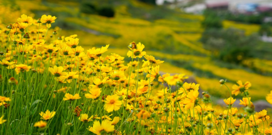 전남 영광군에는 법성포 단오제가 열리는 곳입니다. 법성포 숲쟁이 꽃동산의 금계국이 노랗게 예쁘게 피어 있습니다.