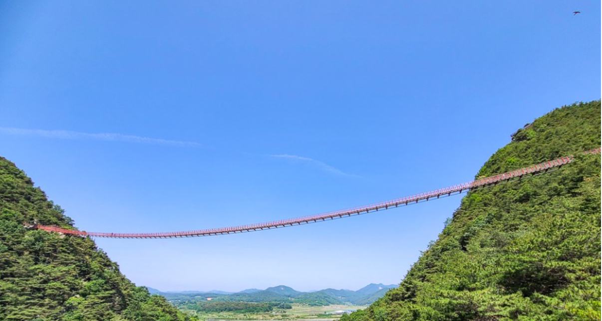 순창의 체계산 출렁다리는 2020년 3월에 개장한 무주탑 현 수료교로 국내 최장인 270m로 성인 기준 70kg 1300명이 동시에 올라가도 안전하다고 합니다. 수려한 경관과 자연이 어우려지 출렁다리입니다.