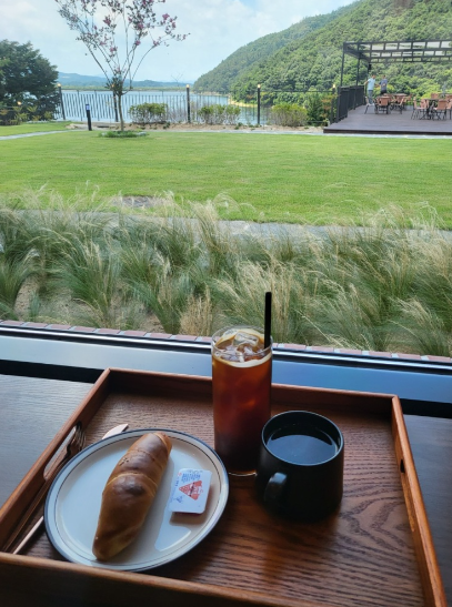 김제에서 제일 크고 분위기 있는 카페입니다. 금평저수지 인근이라서 뷰도 너무 좋아요. 산과 저수지 자연이 어우러져