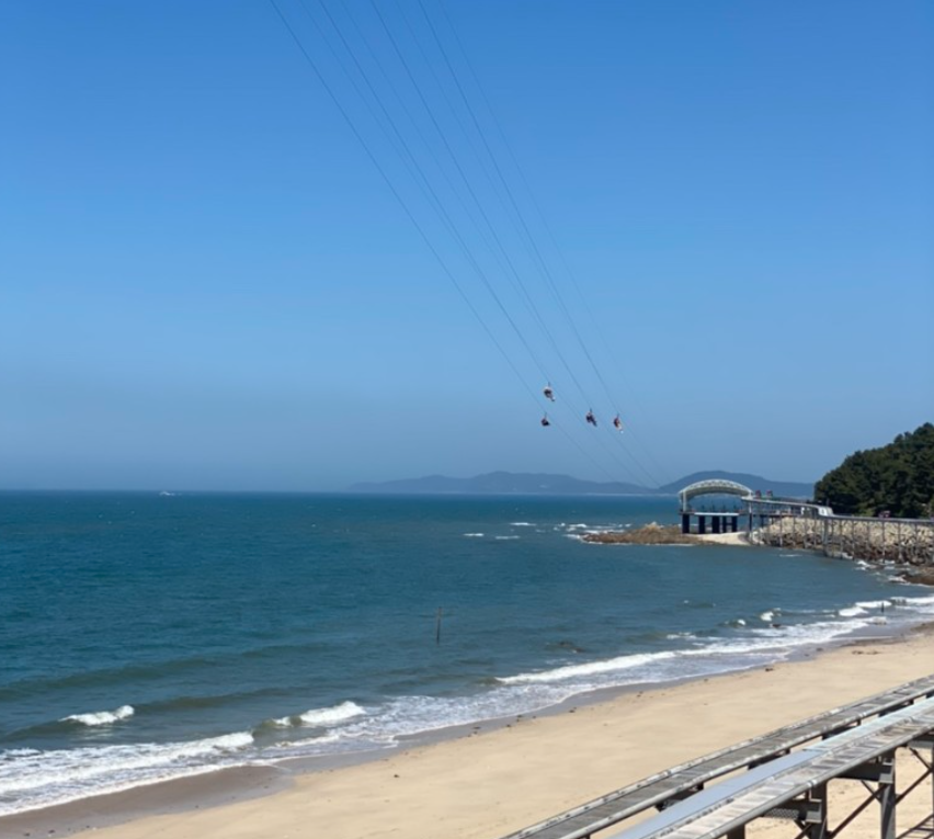 우리나라 5대 해수욕장에 속하는 대천해수욕장입니다. 머드축제로 유명한 곳이고 요즈음은 스카이바이크와 집라인이 핫플레이어입니다. 스카이바이크는 수동구 간고 자동 구간이 있어서 자동 구간을 발을 가만히 있어도 이동됩니다.