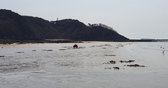 다양한 어패류와 해초가 서식하는 바다생물 체험장이 있습니다. 바닷가에서 땅만 파면은 조개가 나오네요,