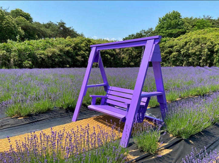 여행자들의 쉼터 카페청, 보랏빛 향기를 머금은 라벤더 정원과 넘실대는 분홍빛 물경의 핑크 뮤리 정원이 조성되어
