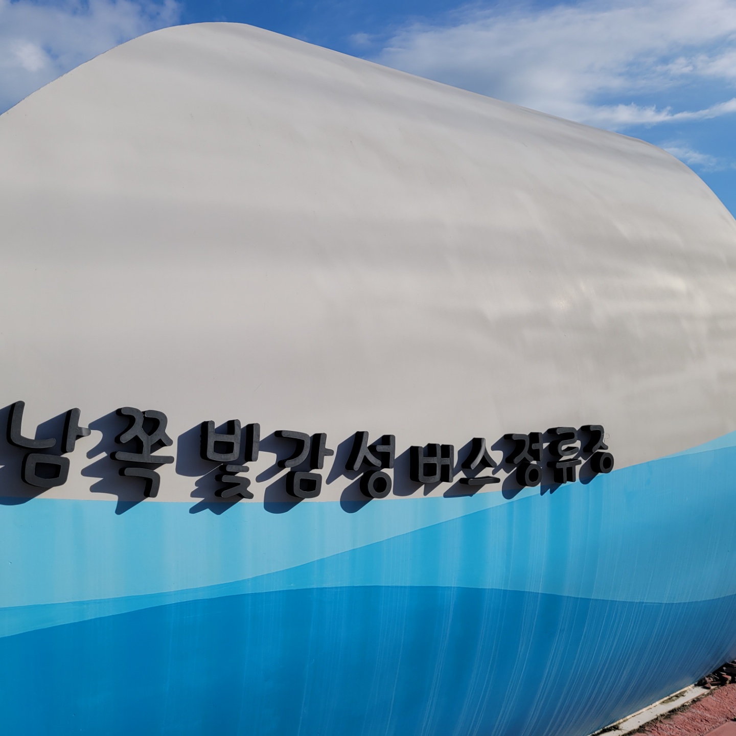 거제 학동 몽돌해수욕장 버스정류장입니다. 정류장 옆에 무료주차장이 넓게 있습니다.