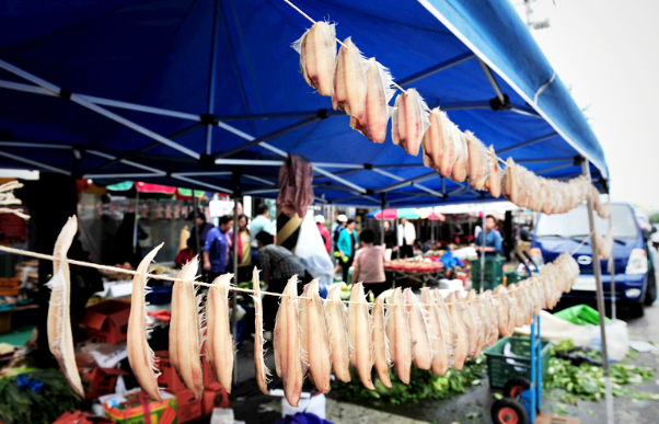 동해의 전총시장입니다. 매달 3일, 8일에 열리는 5일장입니다. '3배의 인심 8배의 행복'이라는 슬로건을 내결고 매달 3일, 8일, 13일, 18일, 23일, 28일 장이 열리고 있습니다.