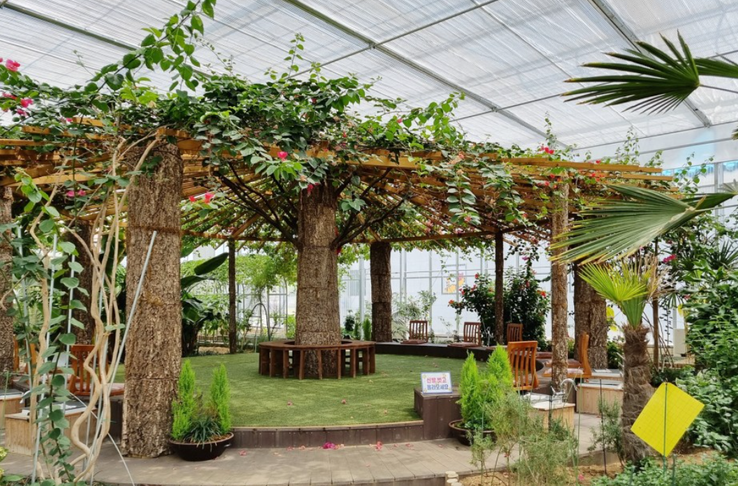 테마공원을 만들었습니다. 실재 온실 원예 힐링관이 있어서 다양한 열대식물도 구경할 수 있습니다.