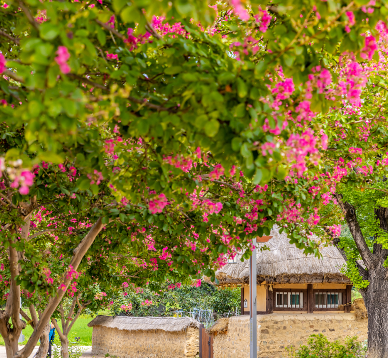 성주 한 개 마을은 특히 하게 여름에 배롱나무꽃이 마을 곳곳에 피어 아름 다을 더하고 있으며 한옥과 잘 어울립니다.